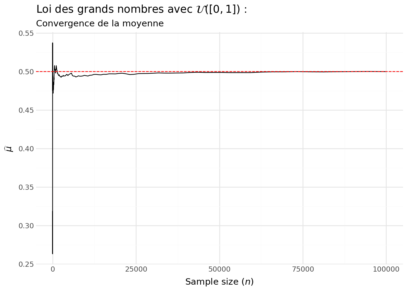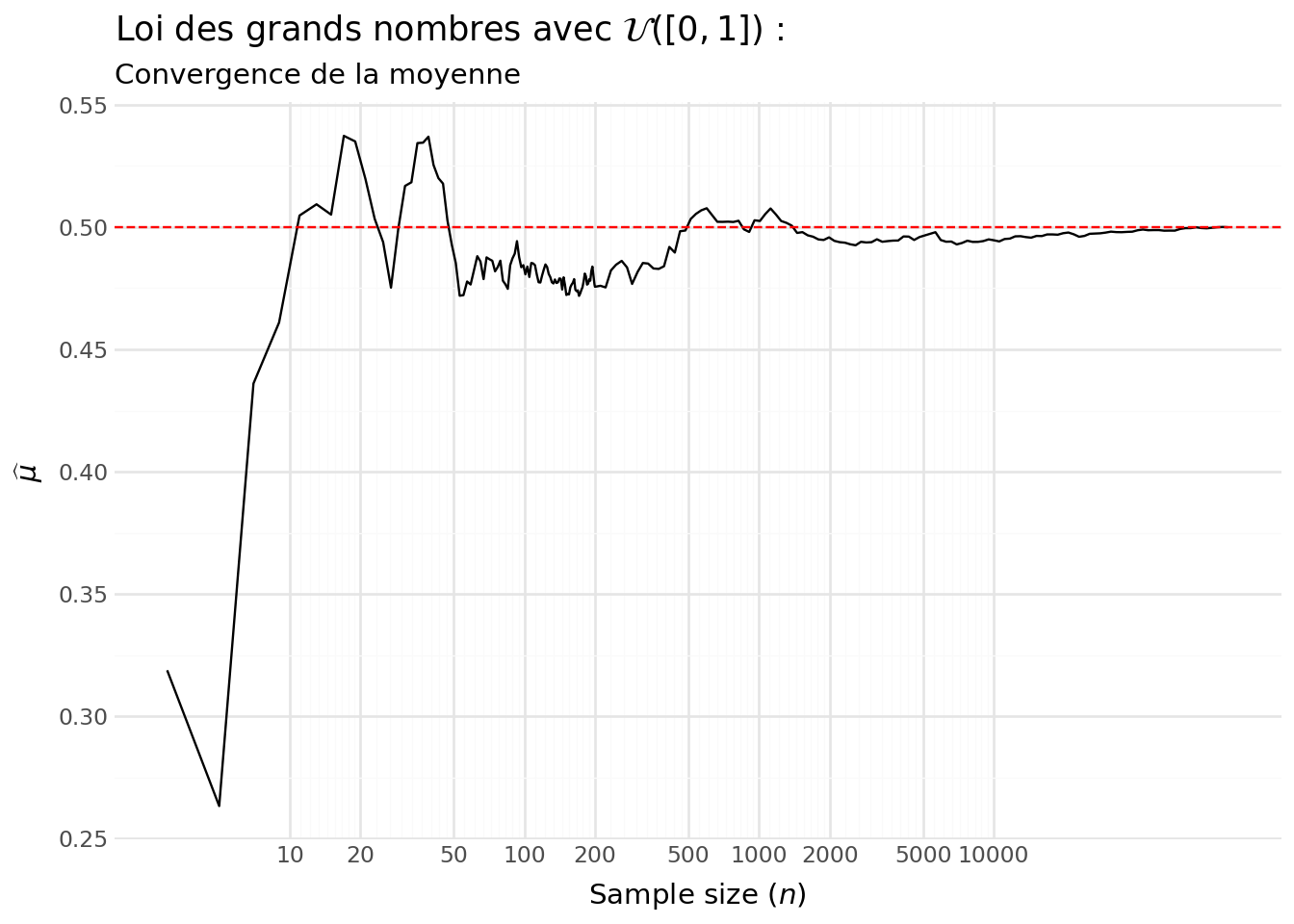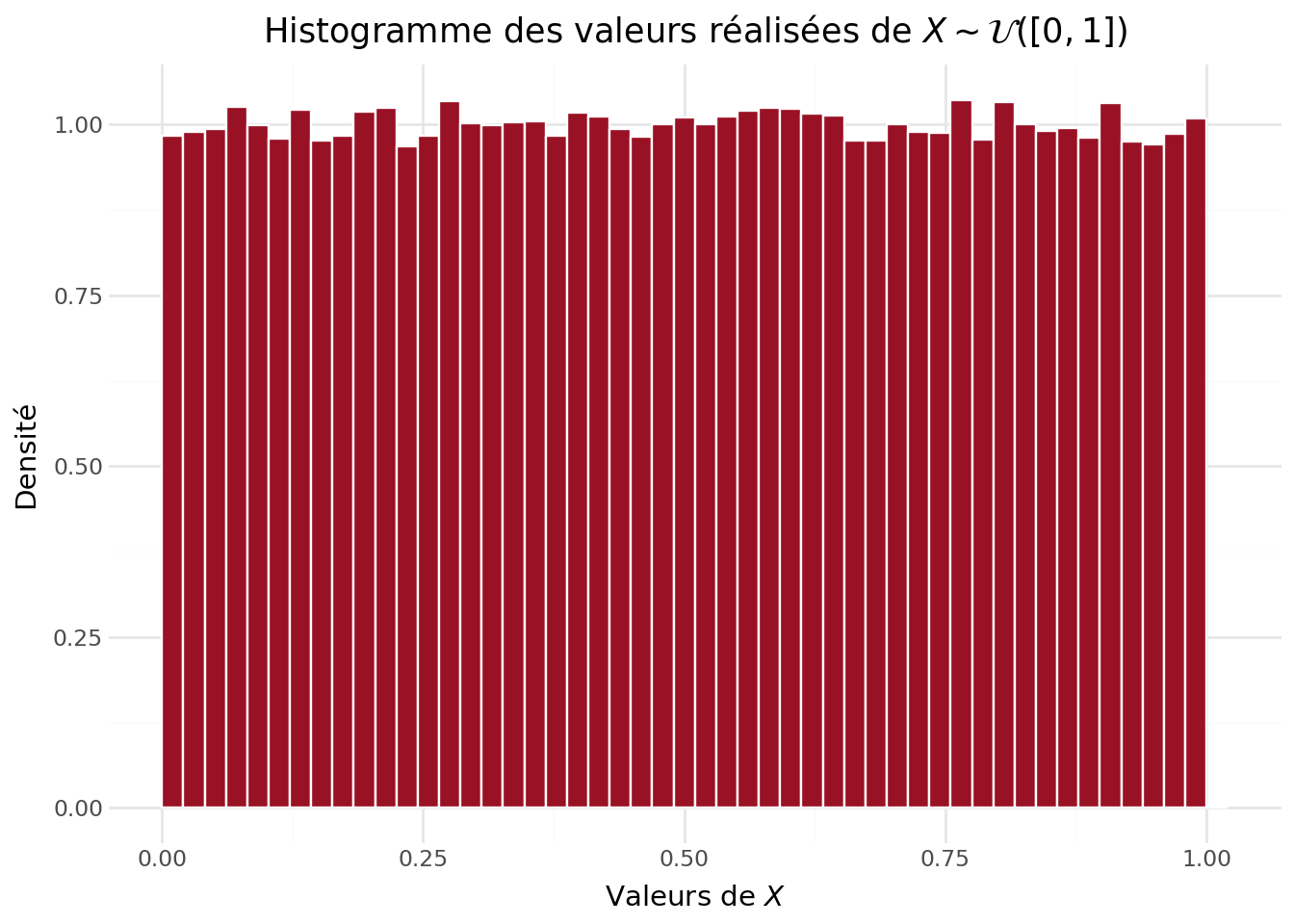 - \(X\) une variable aléatoire, 1000 répétitions d’une loi \(U(0,1)\)