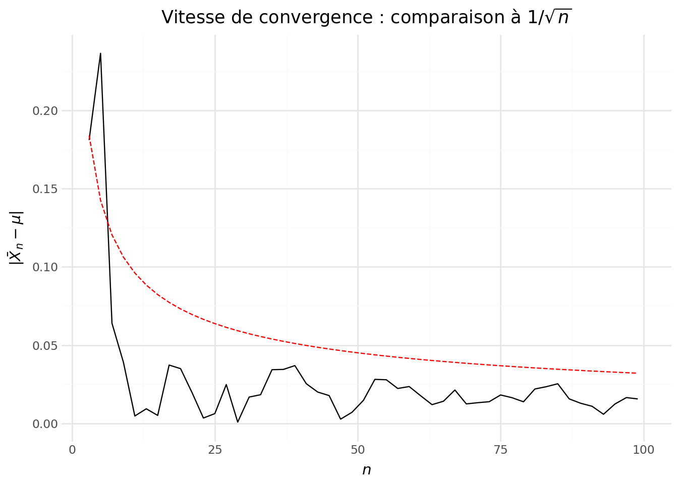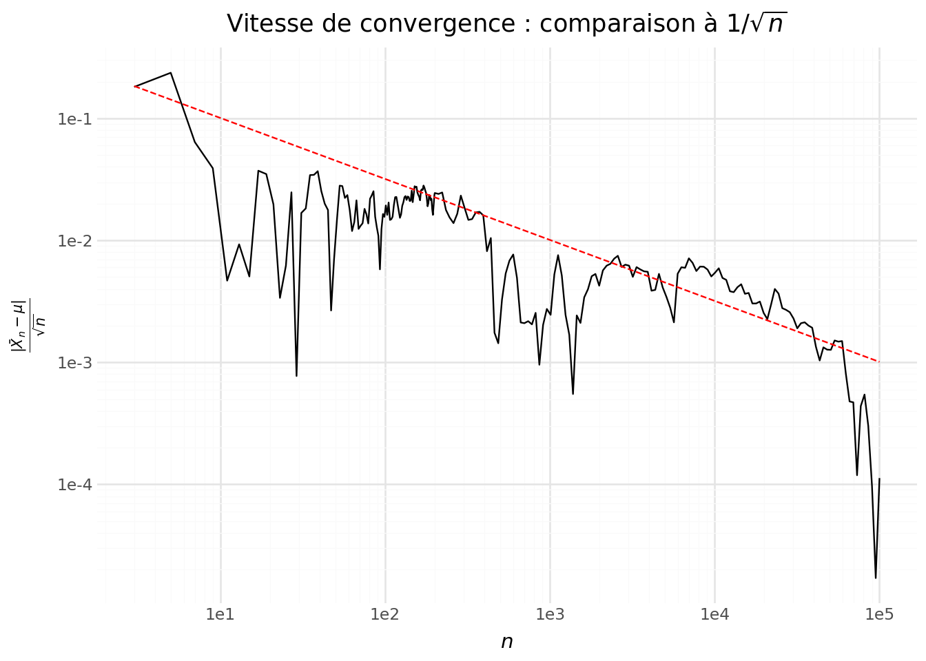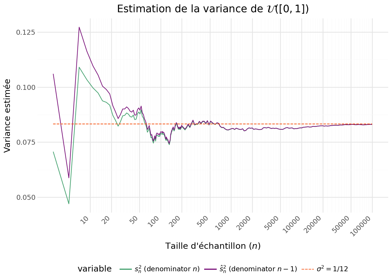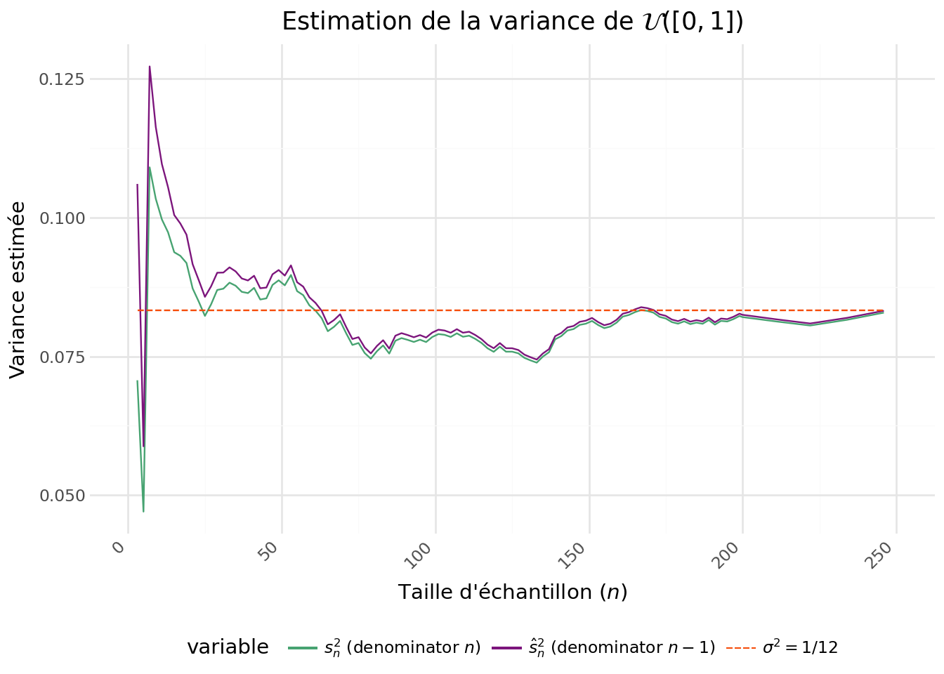- \(X\) une variable aléatoire, 1000 répétitions d’une loi \(U(0,1)\)