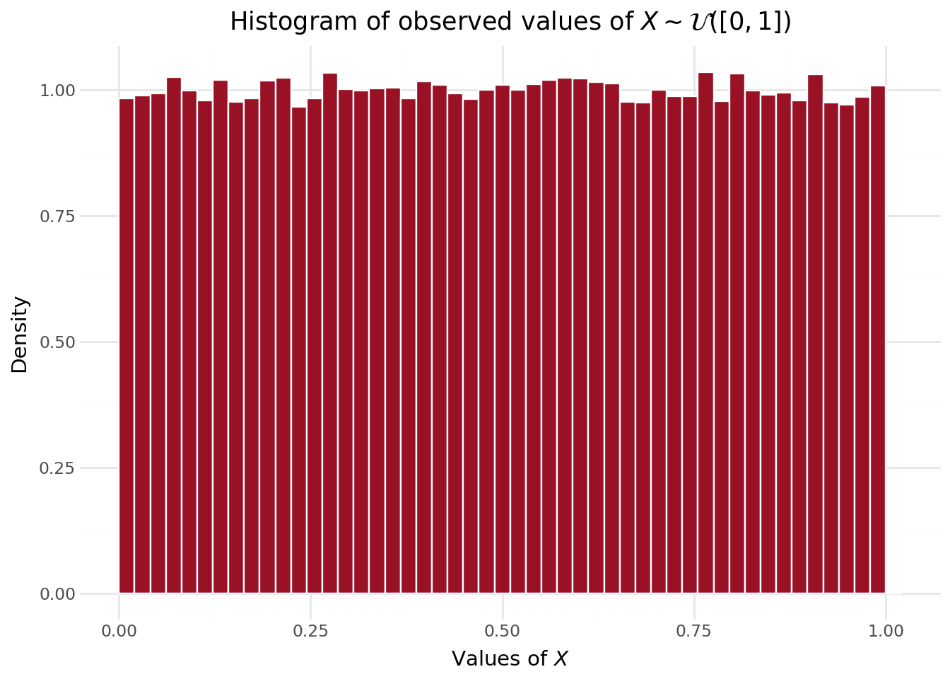- \(X\) a random variable, 1000 repetitions of a \(U(0,1)\) distribution