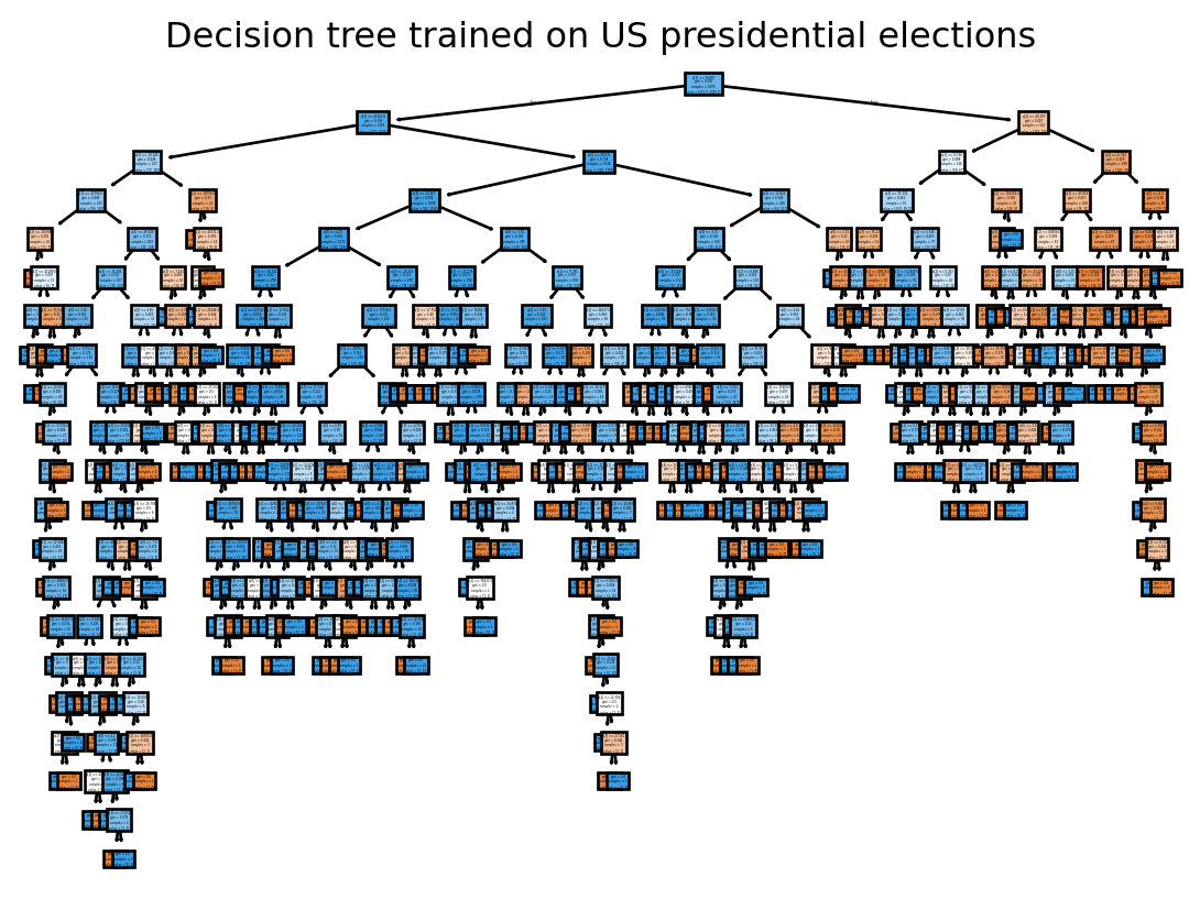 Even though the Republicans lost in 2020, they won in more counties (less populated ones). We will consider a Republican victory as our label 1 and a defeat as 0.