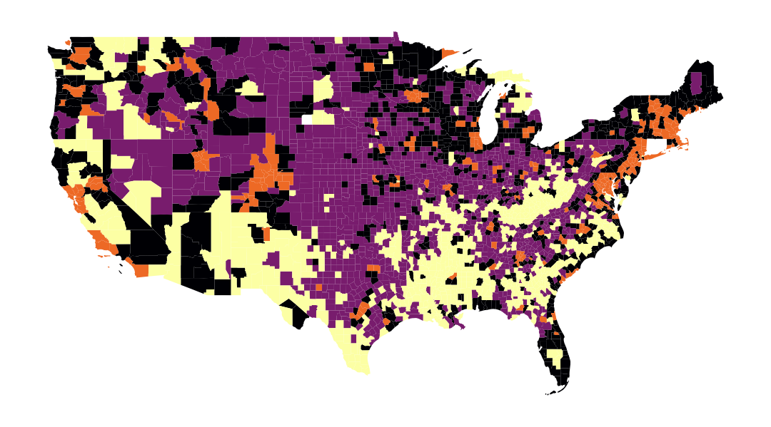 !pip install geopandas openpyxl plotnine plotlyMachine learning materials in this course uses a unique dataset, presented in the introduction. All examples are based on US county level presidential election results combined with sociodemographic variables. Source code for data ingestion is available on Github.